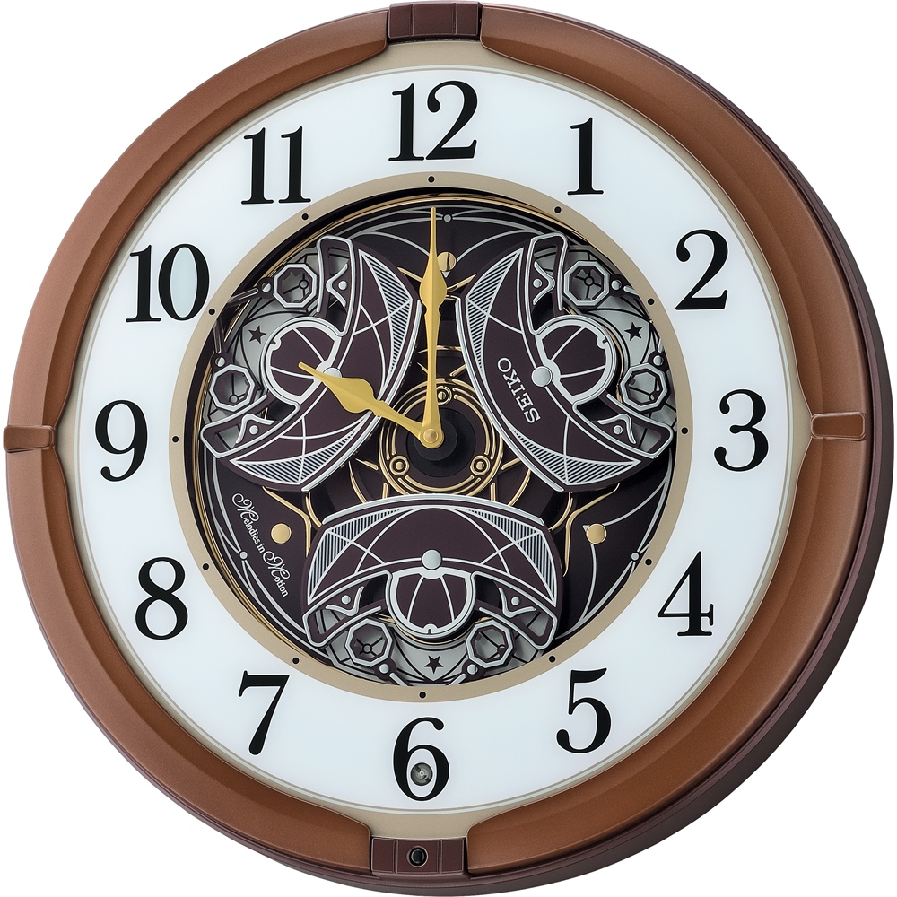 On the hour dial opens and rotates while playing randomly one of 18 melodies with opening & ending sequence