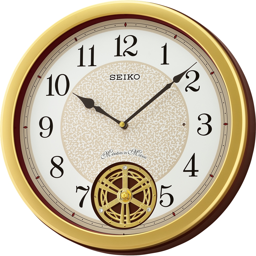 Motion on the hour while playing one of 18 melodies with opening sequence