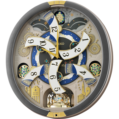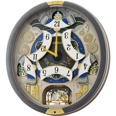 On the hour dial opens and rotates while playing randomly one of 30 melodies with opening & ending sequence
